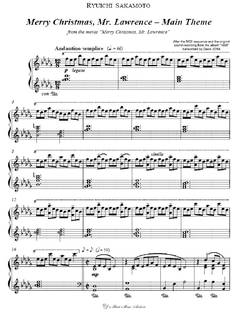 And on the heels of the ymo s breakup in 1983 sakamoto jumped right into the fray with this soundtrack to director nagisa oshima s merry christmas mr. Download and print in pdf or midi free sheet music for merry christmas mr lawrence by misc soundtrack arranged by shigeo ida for piano solo. Starring david bowie ryuichi sakamoto tom conti and takeshi kitano.